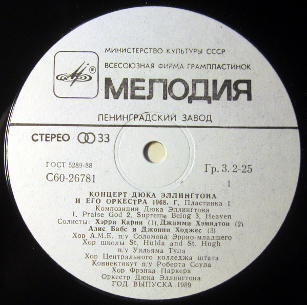 - Производитель грампластинки – Ленинградский Завод Грампластинок