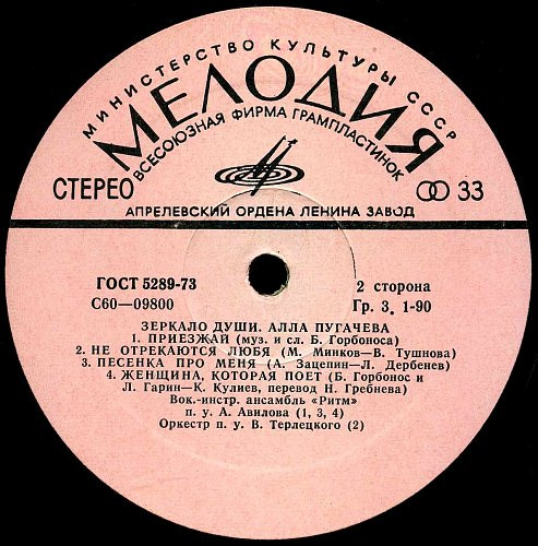- Производитель грампластинки – Апрелевский Завод Грампластинок