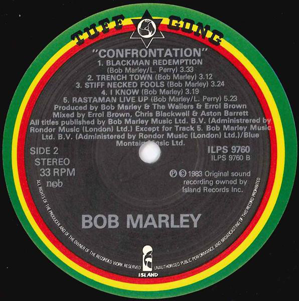 A version with slightly different publishing company names on the labels can be found here: Bob Marley & The Wailers - Confrontation