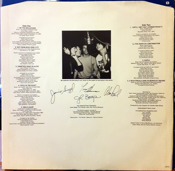 - Vocals – Alan Paul, Cheryl Bentyne, Janis Siegel, Tim Hauser
