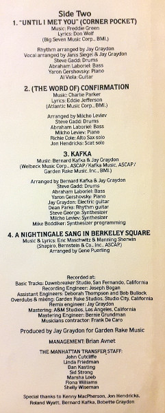 KafkaArranged By – Bernard Kafka*, Jay GraydonBass – Abraham LaborielDrums – Steve GaddElectric Guitar – Jay GraydonMusic By – Bernard Kafka*, Jay GraydonPiano – Yaron GershovskyProgrammed By [Synthesizer] – Mike Boddicker*Rhythm Guitar – Dean ParksSynthesizer – Milcho Leviev, Steve George |