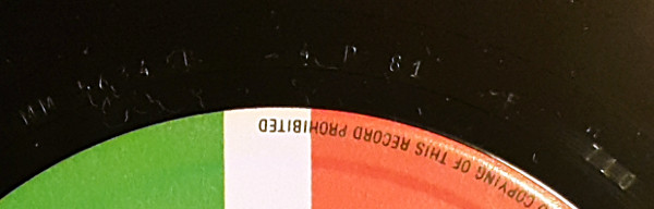 On sleeve, below title of track A5: "(Dedicated to Angela from Alan)"