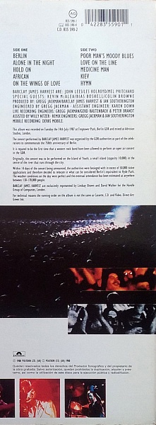 Recorded Live on Tuesday the 14th July 1987 at Treptower Park, Berlin, GDR and mixed at Advision Studios, London.