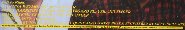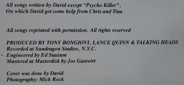 Written-By – Christopher Frantz*, David Byrne, Martina Weymouth*