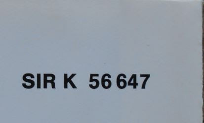 56 647 on rear sleeve and spine