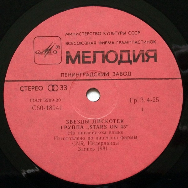 Similar version with alternative red labels: Stars On 45 - Звезды Дискотек.