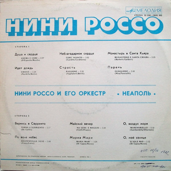 - Pressed By – Ленинградский Завод Грампластинок