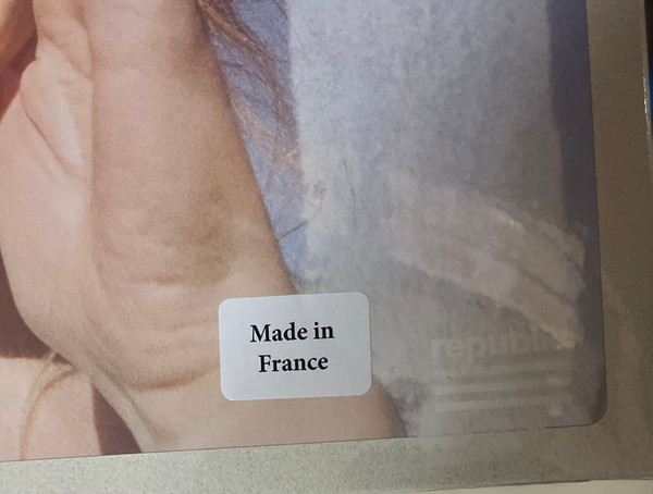 Barcode sticker and "Made in France" sticker attached to rear shrink wrap.