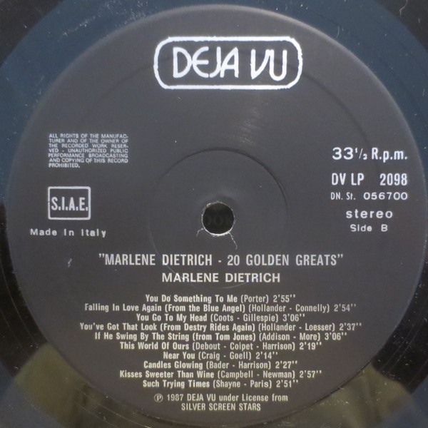Track B8 : "Candles Glowing" is a an English adaptation of the German song "Glocken Läuten", also recorded in German by Marlene Dietrich