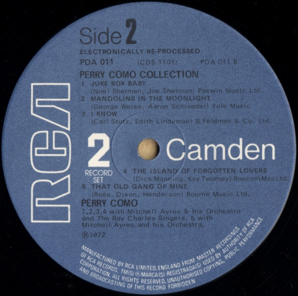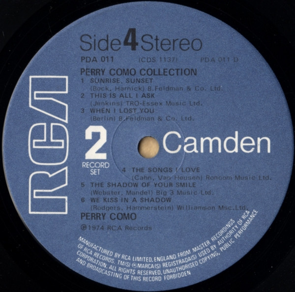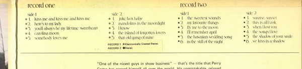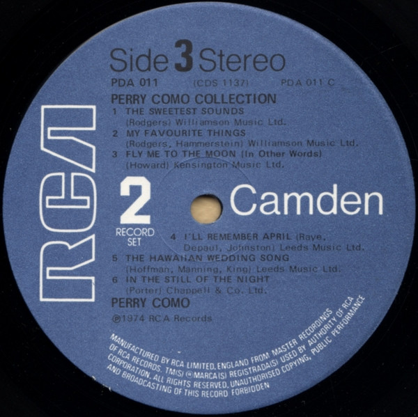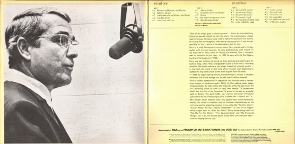 Similar to Perry Como - The Perry Como Collection but with extra printed text next to the side designation on the inner/right gate.