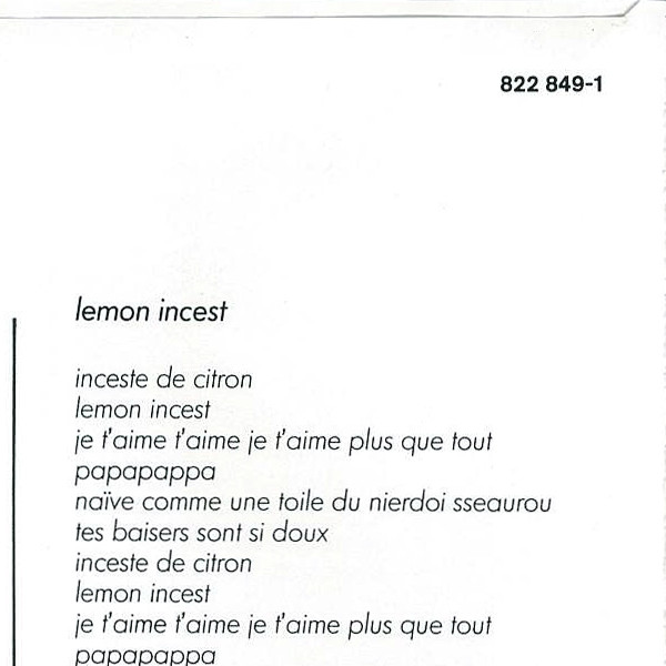 Some copies have a Promo sticker "No Comment" and/or "Grand Prix National 1984" and/or "Lemon Incest"