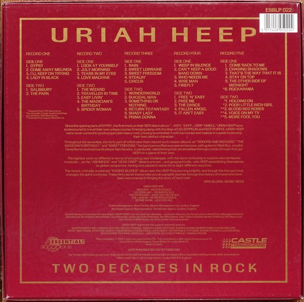 5LP box set spanning Heeps career from 1970-1990. Includes 26 page colour/b&w booklet and a coloured DIN A 4 two sided discography sheet.