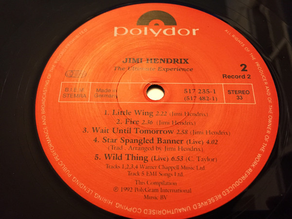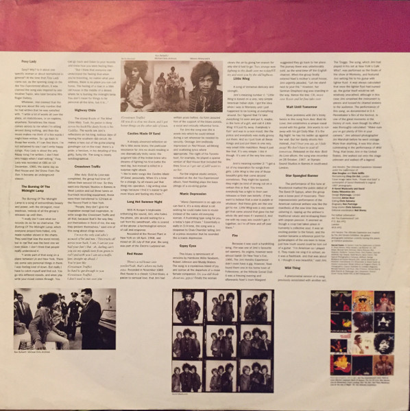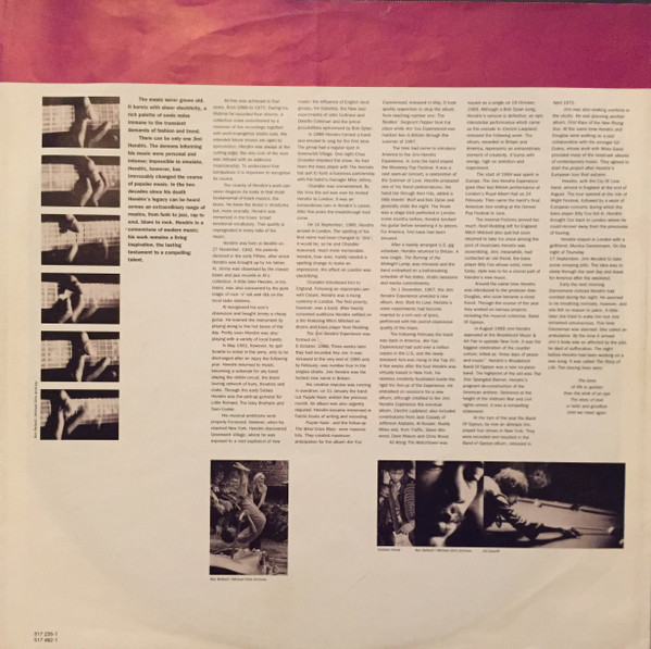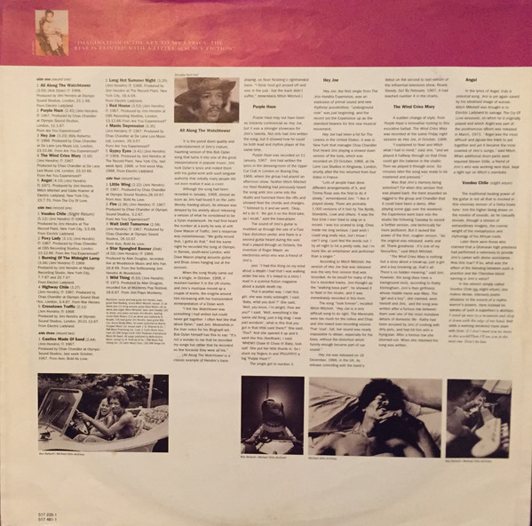 At the inner sleeves, beneath a couple of photographs of J. Hendrix, the lyrics and credits of the songs are mentioned.