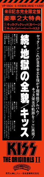 Comes with an obi, an 8 page liner notes/lyrics booklet, an 8 page full color photo booklet and four Kiss masks.