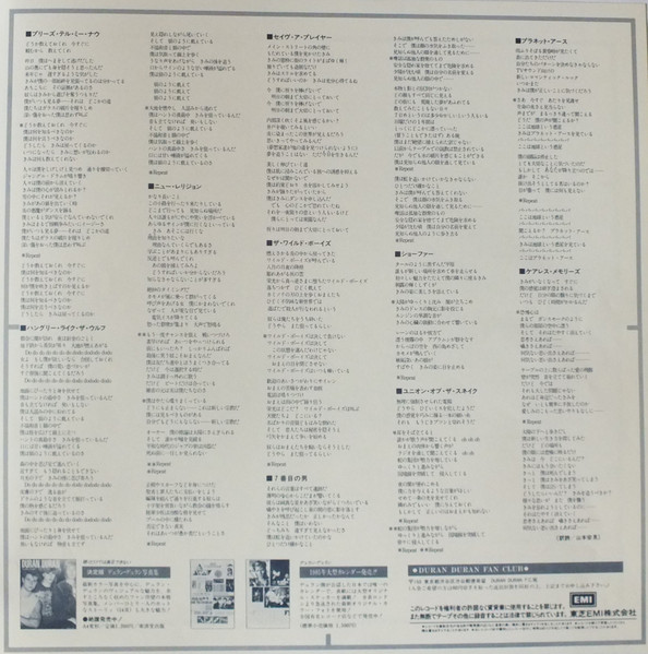 - Performer [Duran Duran are] – Andy Taylor, John Taylor, Nick Rhodes, Roger Taylor (2), Simon Le Bon