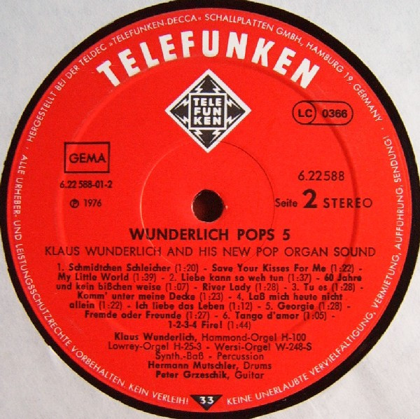 - Organ [Hammond-Orgel H100, Lowrey-Orgel H-25-3, Wersi-Orgel W-248-S], Synthesizer [Synth.-Baß], Percussion – Klaus Wunderlich