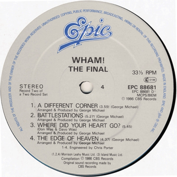 - Written-By – Andrew Ridgeley (tracks: A1, A4, B2), Dave Was* (tracks: D3), Don Was (tracks: D3), George Michael (tracks: A1 To D2, D4)