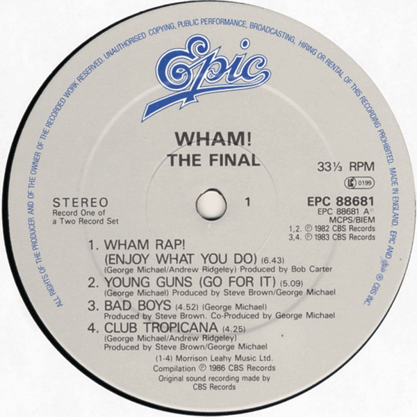 Issued in a single sleeve, includes two printed inner sleeves and an insert containing images of Wham!, the insert only has an image on one side.