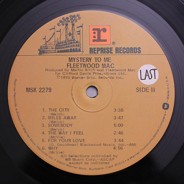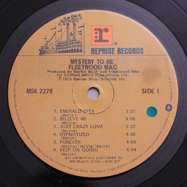 Copyright info above the spindle hole; songwriting credits listed below each track title.
