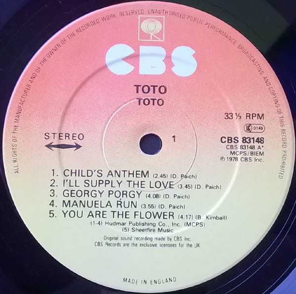 This release is very simular to: Toto, this version has the Label Code printed on the back of the sleeve, bottom right corner next to the logo