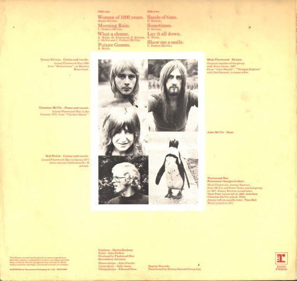 - Written-By – R. Welch* (tracks: A3, A4, B3), C. Perfect (McVie)* (tracks: A2, A3, B4), Danny Kirwan (tracks: A1), D. Kirwan* (tracks: A3, B1, B2), J. McVie* (tracks: A3), M. Fleetwood* (tracks: A3)