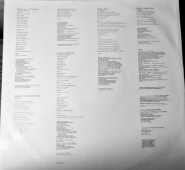 Issued with a printed inner sleeve contianing lyrics and credits.
