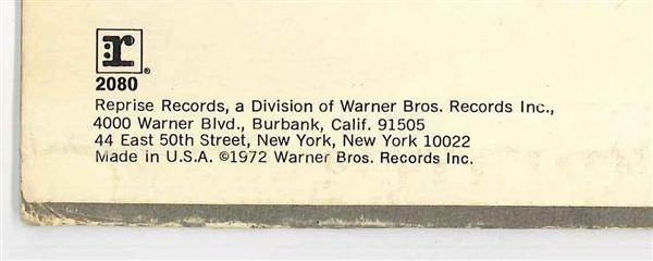 This is the first US pressing. Textured sleeve with the border on the front cover. Brown Reprise labels without Warner Bros. address. 4000 Warner Blvd. address on the back cover. Brown Reprise label variation.