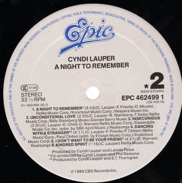 Producer – Cyndi Lauper, E.T. Thorngren*Written-By – C. Lauper*, F. Previte*, P. Chiten* |