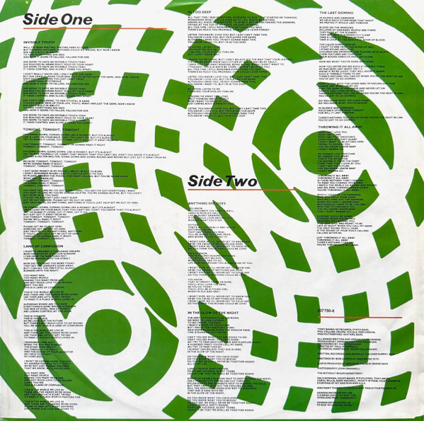 All tracks published by Anthony Banks Ltd/Philip Collins Ltd/Michael Rutherford Ltd/Hit And Run Music (Publishing) Ltd.