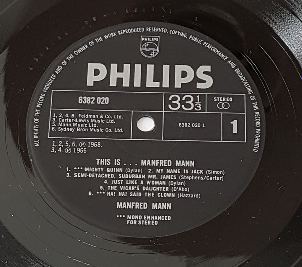 Label Side A of this issue shows: 1, 2, 5, 6 ℗ 1968 3, 4 ℗ 1966 contrary to issue No. 693997 which shows ℗ 1961 ℗ 1970.