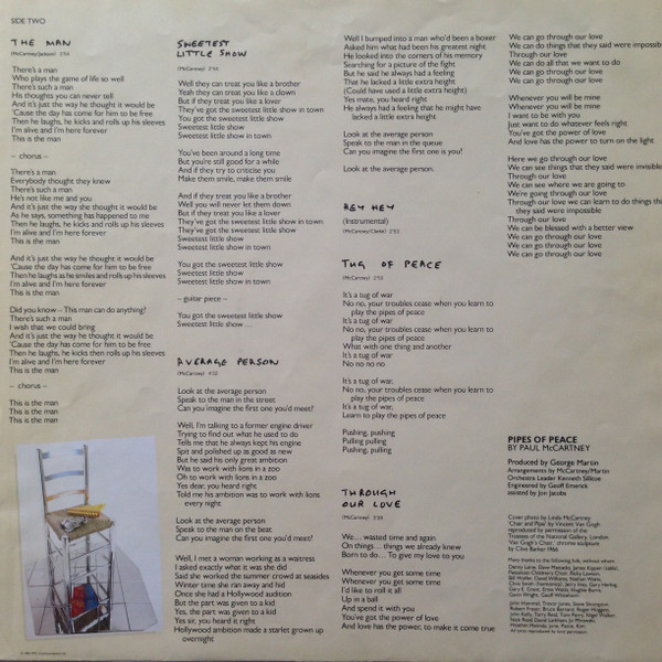 For nearly same release but printed in Holland by EMI Services Benelux B.V. see here: Paul McCartney - Pipes Of Peace