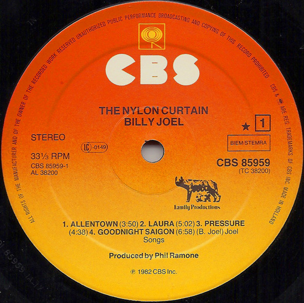 See The Nylon Curtain for a version with identical artwork and "STERLING" in runouts.