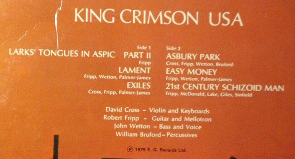 - Violin – Eddie Jobson (tracks: A1, B3)