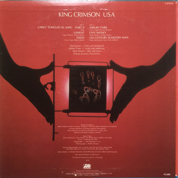 Remix assistance Eddie Jobson, Violin on "Larks' Tongues" "Schizoid Man" and piano on "Lament".