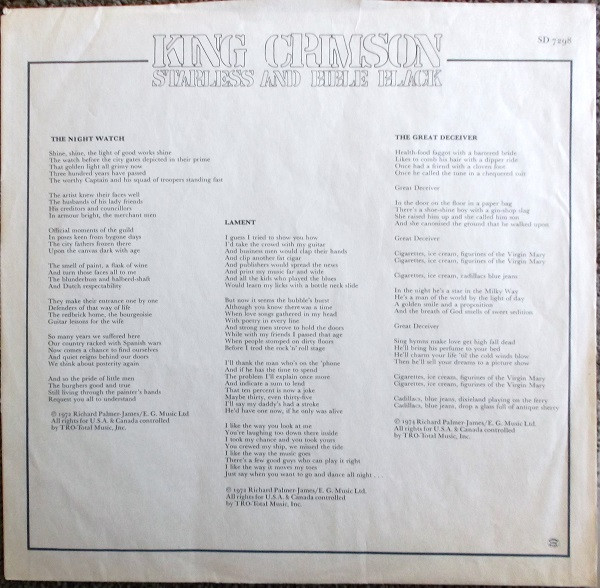 Issued with an inner sleeve containing the lyrics printed on one side.