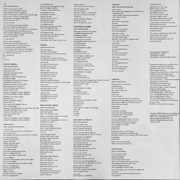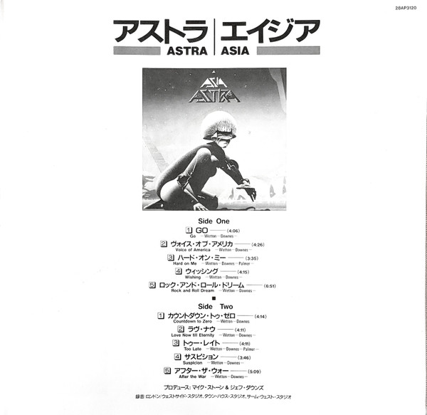 - Written-By – Palmer* (tracks: A3, B3), Downes*, Wetton*