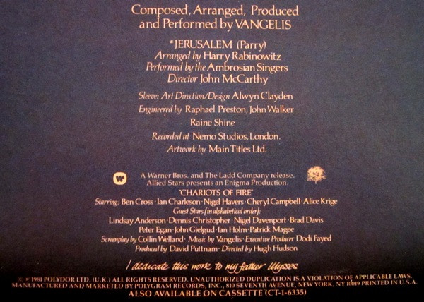 - Composed By, Arranged By, Producer, Performer – Vangelis (tracks: A1 to A5.1, B)