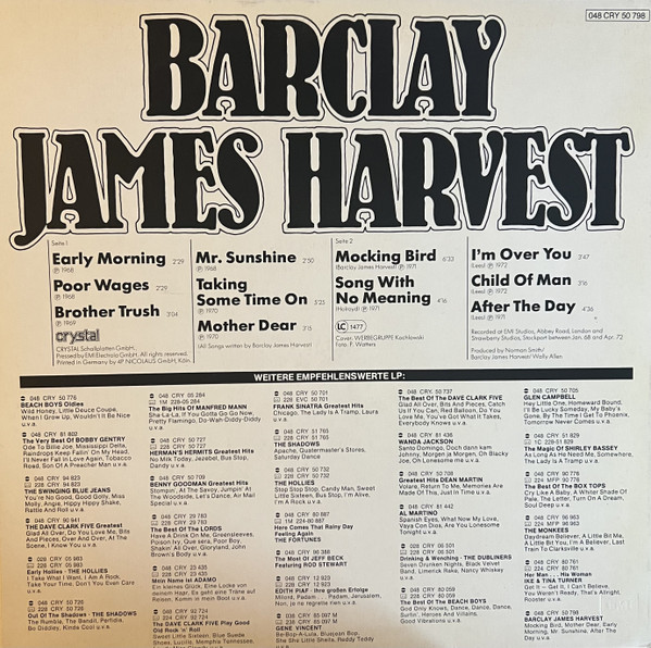 - Producer – Barclay James Harvest, Norman Smith, Wally Allen