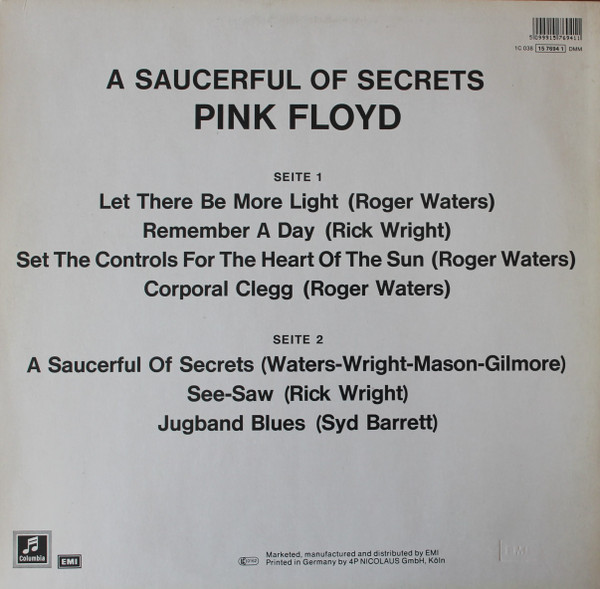 - Written-By – David Gilmour (tracks: B1), Nick Mason (tracks: B1), Richard Wright (tracks: A2, B1), Roger Waters (tracks: A1, A3, A4, B1), Syd Barrett (tracks: B3)