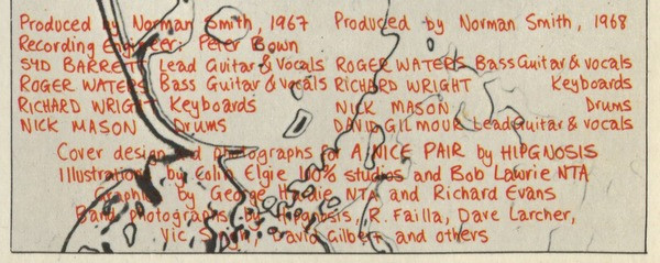 - Lead Guitar, Vocals – David Gilmour (tracks: C1 to D3), Syd Barrett (tracks: A1 to B5)