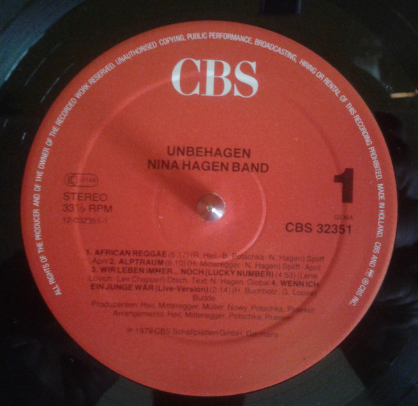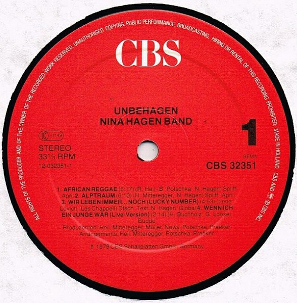 - Phonographic Copyright ℗ – CBS Schallplatten GmbH