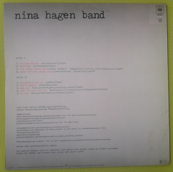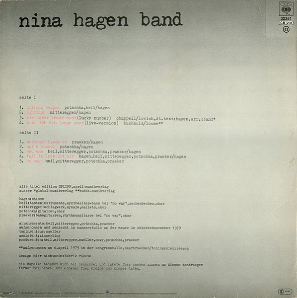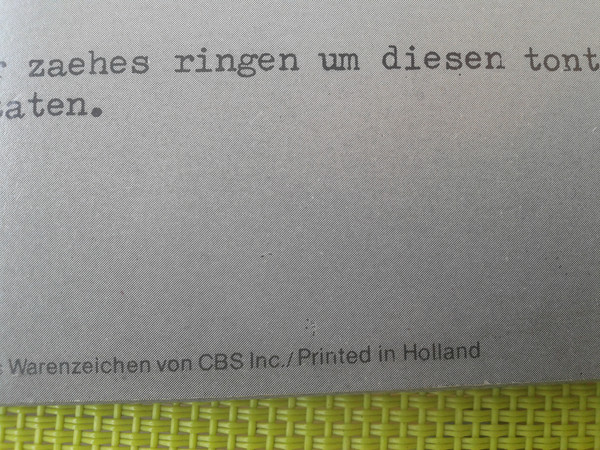 © 1979 CBS Schallplatten GmbH, Germany ℗ 1979 CBS Schallplatten GmbH, Germany / [CBS logo] ist ein eingetragenes Warenzeichen von CBS Inc. / Printed in Holland