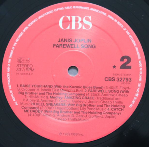 Glossy inner sleeve (one sided) with pics from other (CBS) albums/compilations from Janis Joplin.