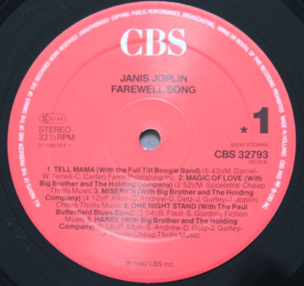 - Featuring – Big Brother And The Holding Company* (tracks: A2, A3, A5, B2 to B4), Chrissy Stewart*, Denny Seiwell, Elliot Mazer, Full Tilt Boogie Band (tracks: A1), Kozmic Blues Band (tracks: B1), Mick Weaver, Peter Stroud, Roy Markowitz, Vinny De La Rocca*