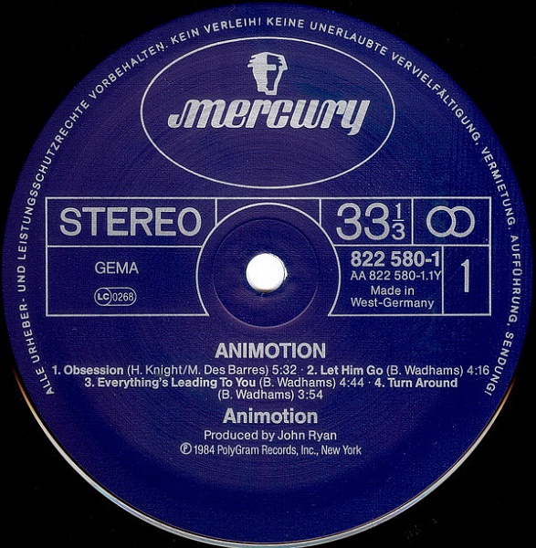 - Performer [Animotion] – Astrid Plane, Bill Wadhams, Charles Ottavio, Don Kirkpatrick, Frenchy O'Brien, Paul Antonelli