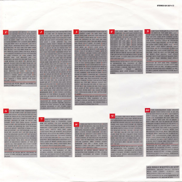 - Producer – KTP* (tracks: A3 to A5, B2, B4, B5), Peter Walsh (tracks: A1 to A4, B1 to B4), Phil Harding (tracks: A5, B5)