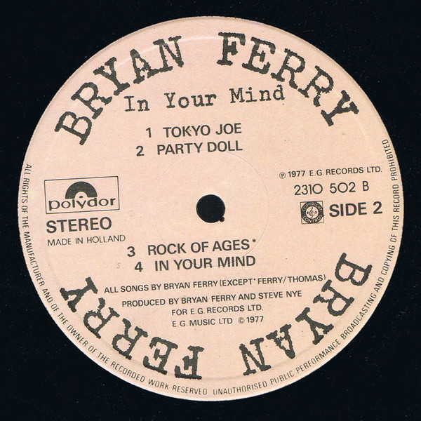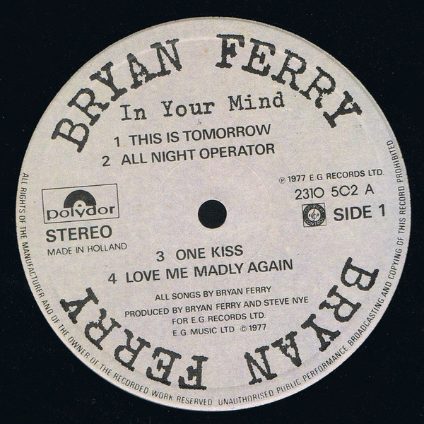 - Phonographic Copyright (p) – E.G. Records Ltd.