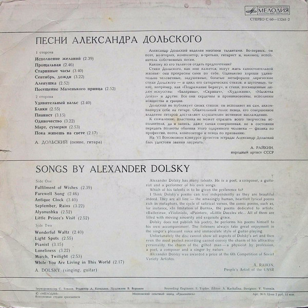 English title: Songs By Alexander Dolsky
