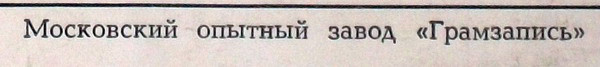 - Manufactured By – Московский Опытный Завод «Грамзапись»