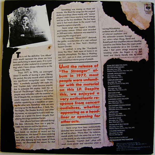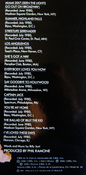 - Vocals, Piano, Keyboards, Design Concept [Album Cover] – Billy Joel